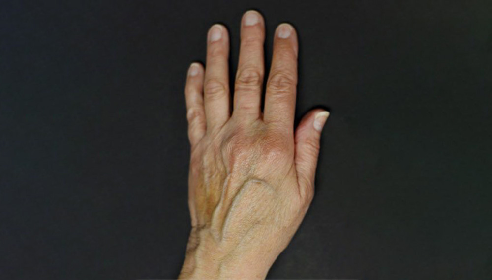 Sun, gravity and other environmental exposures subject the hands to unique combinations of physiologic and environmental stress causing hands to lose volume as a result of muscle atrophy, bone demineralization, and loss of normal fatty tissue. This results in wrinkled, discolored skin and prominent superficial veins of the hand. These veins get larger and more noticeable over time.